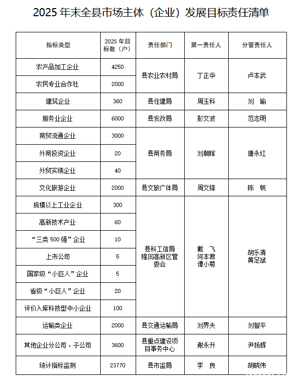 附件:1.2025年末全县市场主体(企业)发展目标责任清单
